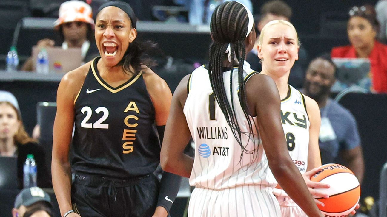 The Sun’s performance Wednesday was one of their best all season. And the Aces, who led the WNBA in scoring this season behind MVP candidate A’ja Wilson, looked very good in that respect Wednesday. But Las Vegas’ defense was even better: The Sky’s 59 points are the fewest the Aces have allowed this season. According to ESPN Stats & Information, the Aces held the Sky to just 21% shooting (9-of-43) on contested field goals.