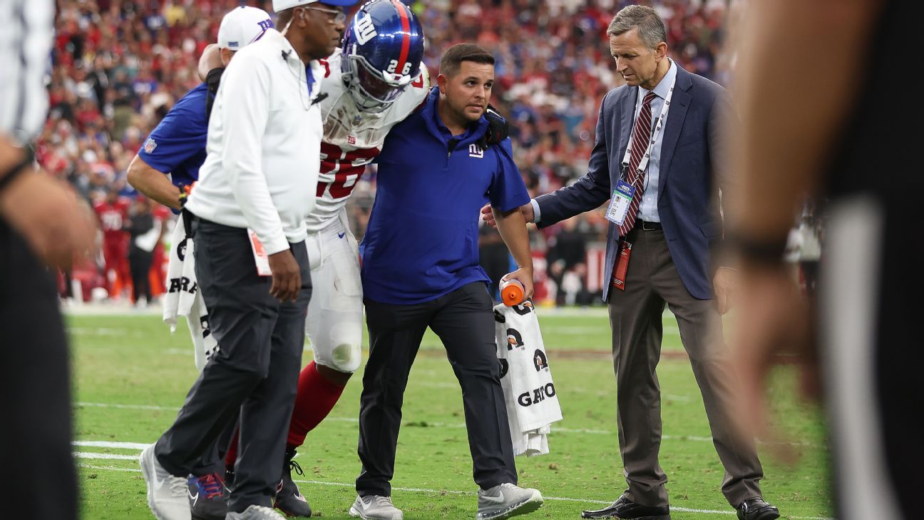 “I don’t know yet,” coach Brian Daboll said when asked about the severity of Barkley’s injury.