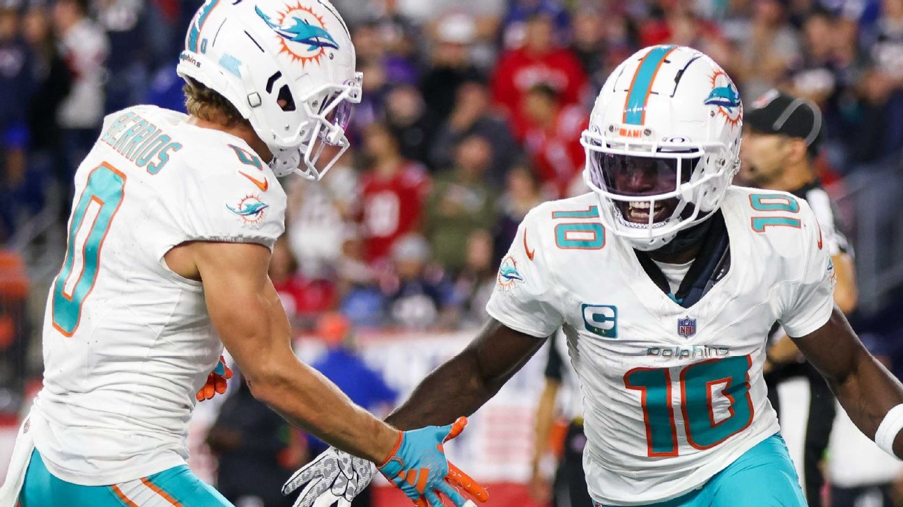 After recording 215 yards and two touchdowns on 11 catches in Week 1, Hill finished Sunday’s game with 40 yards and a touchdown on five receptions as the Patriots sought to take away the threat of a deep pass. According to NFL Next Gen Stats, New England had five or more defensive backs on the field for 32 of its 61 snaps — 17 of which featured six defensive backs on the field.