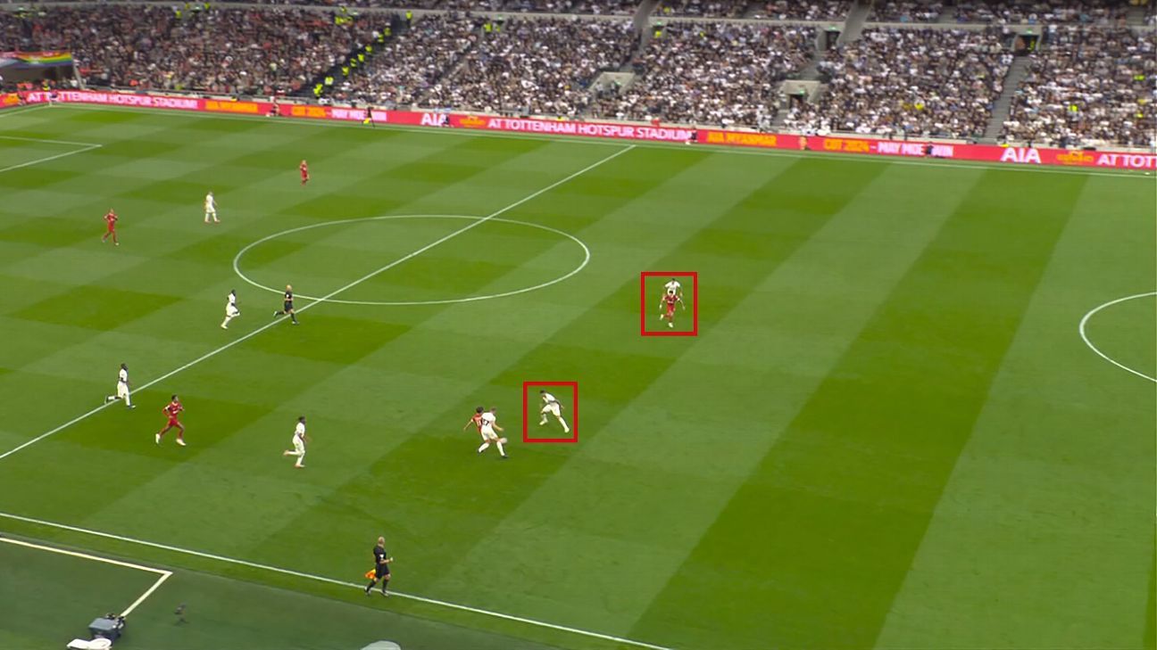 What happened: Mohamed Salah played Luis Díaz through on goal in the 34th minute, and the forward produced a superb strike across goalkeeper Guglielmo Vicario to score. However, the offside flag immediately went up for offside, and the VAR, Darren England, began a check. (watch here.)