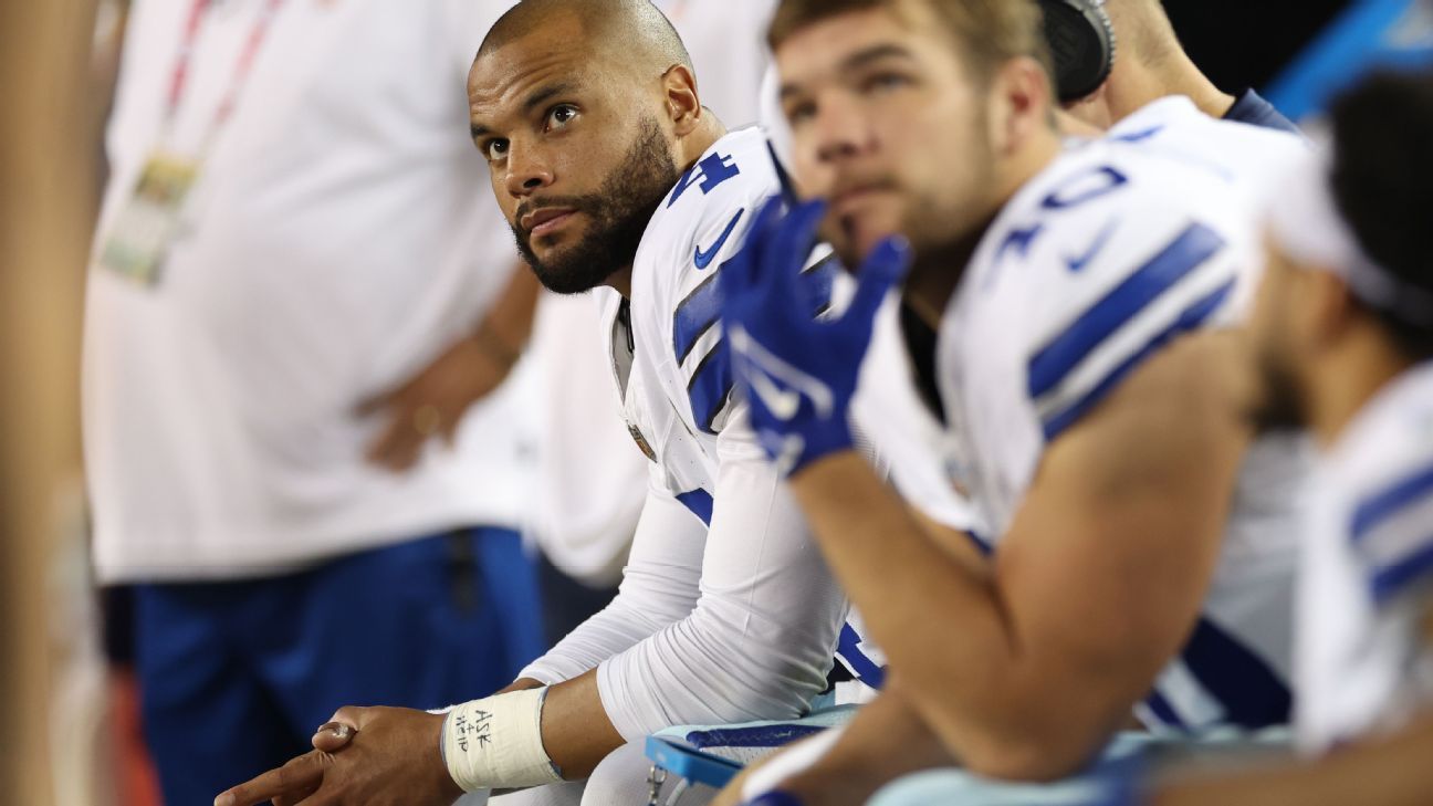 The Cowboys also lost linebacker Leighton Vander Esch in the fourth quarter to a neck injury. Receiver KaVontae Turpin, who scored their only touchdown, did not return following a second-quarter ankle injury. Special teams ace C.J. Goodwin exited in the first half after sustaining a shoulder injury.