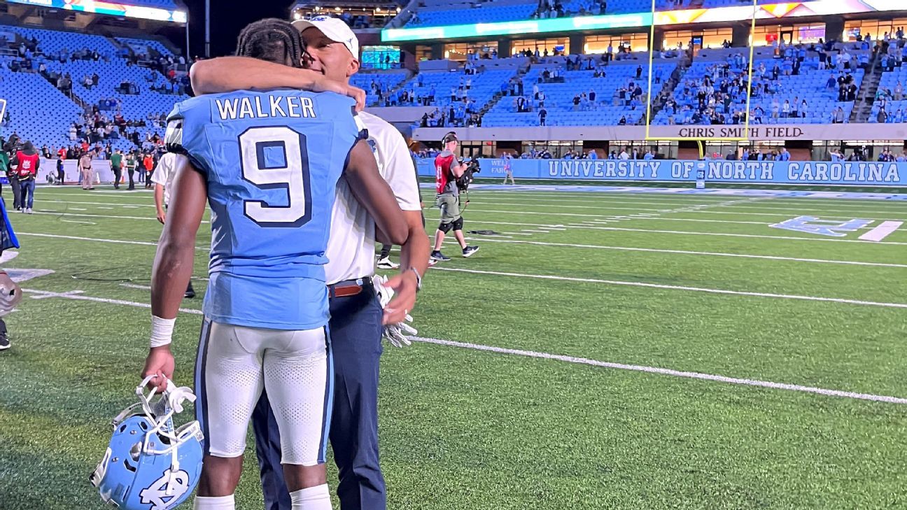 CHAPEL HILL, N.C. — Just before heading into the locker room to prepare for kickoff against Miami on Saturday, North Carolina receiver Tez Walker came to the sideline to give his high school coach a hug.