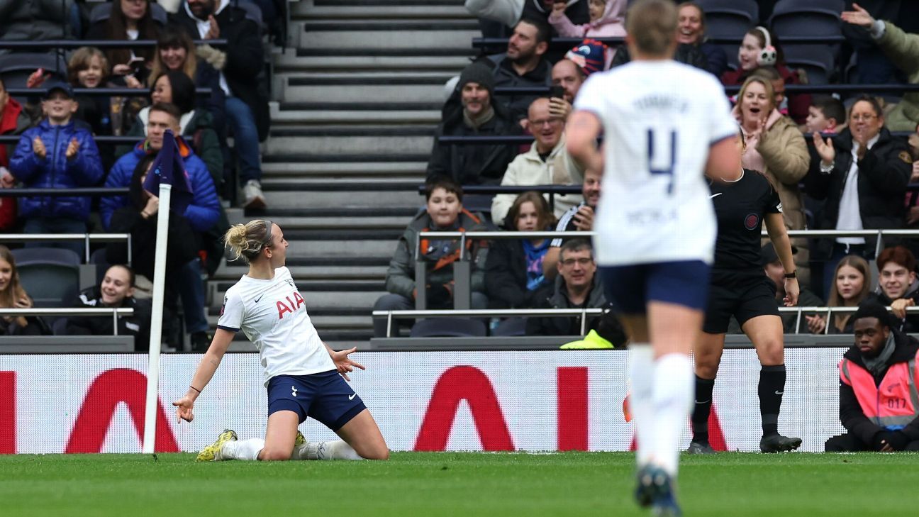 Although there will be questions around why Arsenal couldn’t do more with their 31 shots, all that mattered for the fans chanting “Glory, glory Tottenham Hotspur” at full-time was the first win Spurs had managed over Arsenal in the WSL. — Sophie Lawson