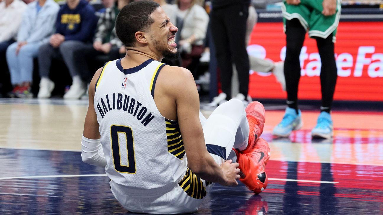 Indiana Pacers star guard Tyrese Haliburton left Monday night’s 133-131 win over the visiting Boston Celtics in the second quarter due to a left hamstring strain. He will undergo an MRI on Tuesday, sources told ESPN’s Adrian Wojnarowski.