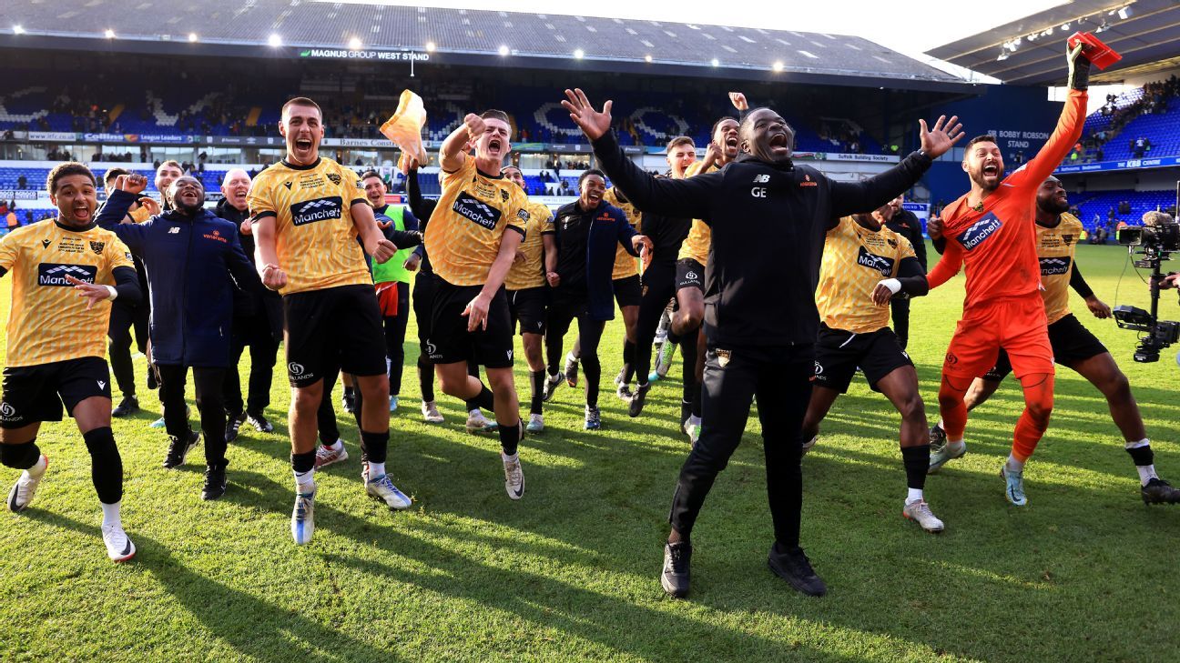 From there, Ipswich threw everything at their non-league visitors — did I mention they had 38 shots to Maidstone’s 2? — but couldn’t find a way through, prompting delirium at full-time. George Elokobi (himself a former Premier League player) was a delight on the touchline as the architect of Maidstone’s success, which sees them become the first team outside England’s top five divisions to reach the FA Cup fifth round since Blyth Spartans managed it in 1978.