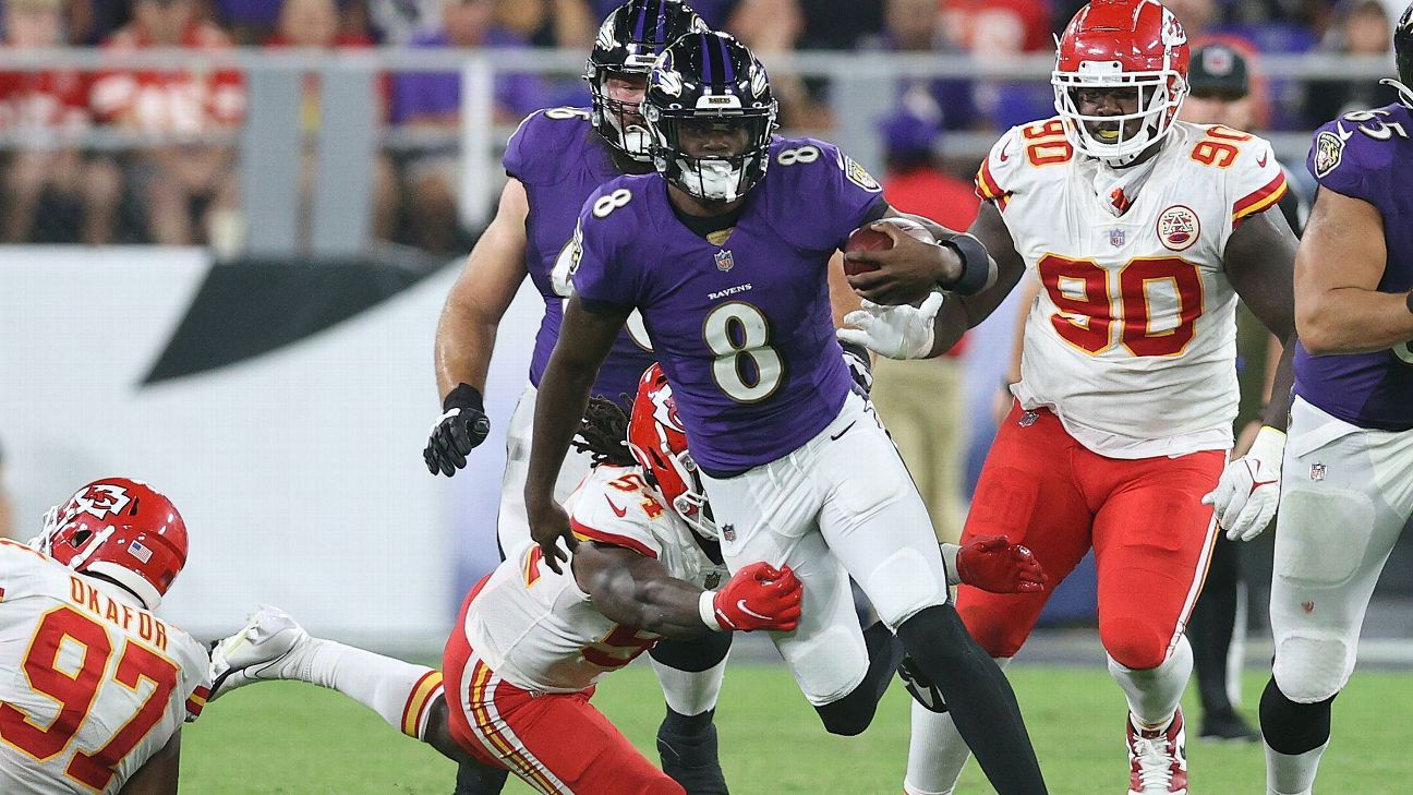 Game-plan key: Kansas City’s defense loves to use man coverage in the red zone, especially inside its own 10-yard line. Baltimore offensive coordinator Todd Monken should have some answers there, with Jackson’s receivers running crossers and delaying their releases. The Ravens were eighth in red zone efficiency, scoring a TD on 61.8% of their trips inside the 20. Read more at ESPN+. — Bowen