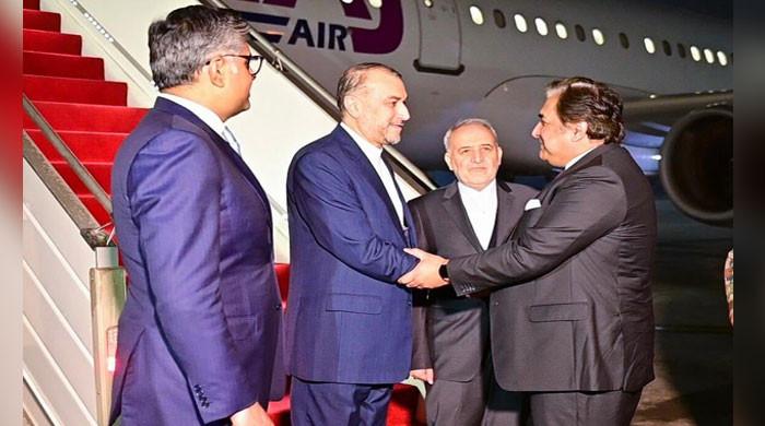 “Foreign Minister of Iran Hossein Amir Abdollahian has arrived in Islamabad at the invitation of [Pakistan] Foreign Minister Jalil Abbas Jilani. He was received at the Nur Khan airbase by the additional foreign secretary (Afghanistan and West Asia),” said a statement issued by the Foreign Office.