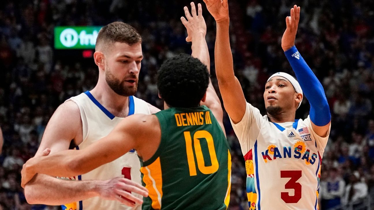 Medcalf: Baylor’s challenges at Allen Fieldhouse continue. The Bears are now 1-18 in their past 19 games at Kansas. And they had never had a better chance to steal a victory over Bill Self in a hostile venue. No Kevin McCullar Jr. due to injury. Dajuan Harris Jr. injured his ankle late in the game. Instead of adding a signature win to boost their tournament seed, the Bears couldn’t stop the short-handed Jayhawks.