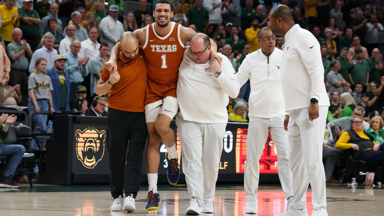 WACO, Texas — Texas big man Dylan Disu had to be helped off the court after spraining his left knee in the Longhorns93-85 loss at 11th-ranked Baylor on Monday night.