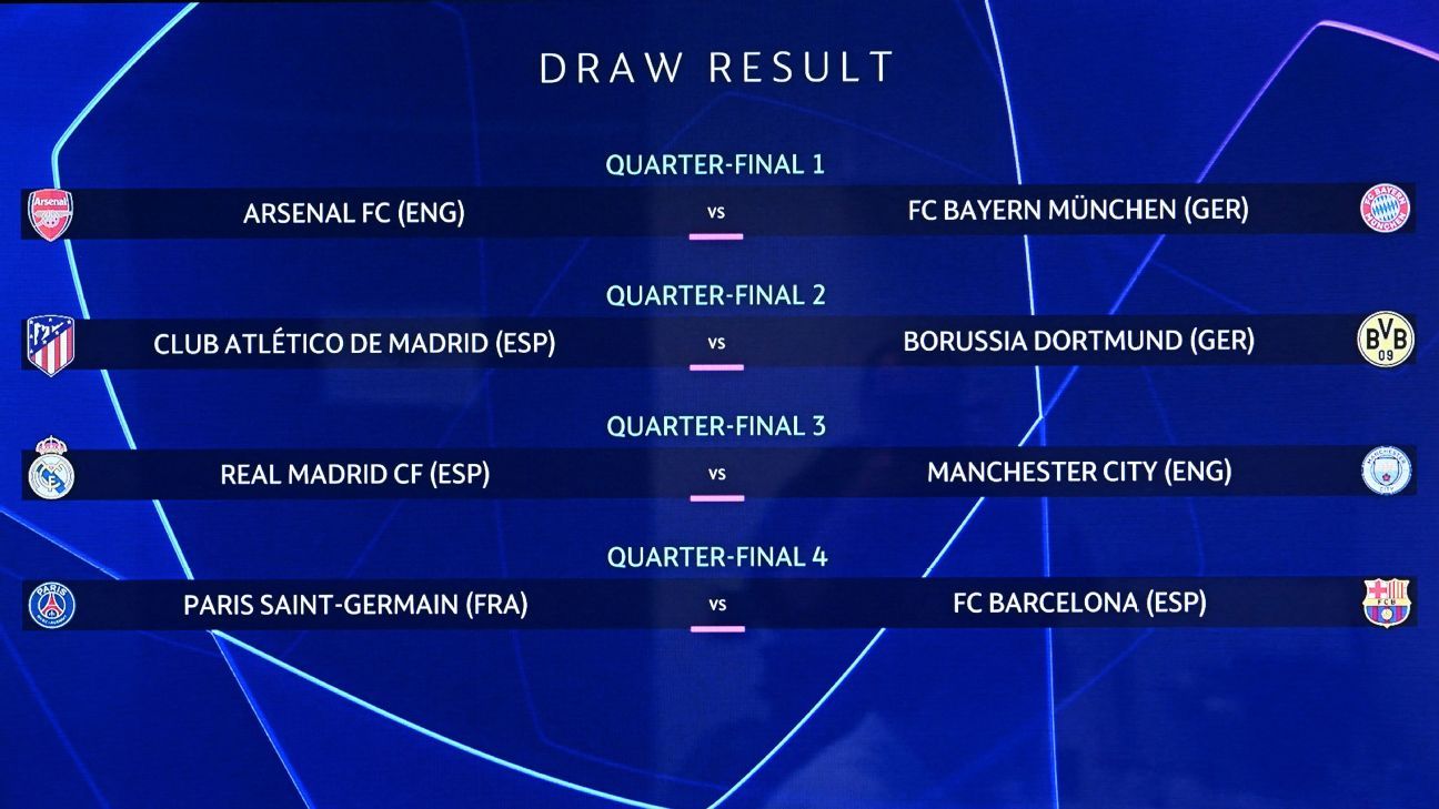 With eight strong sides in the pot for Friday’s Champions League quarterfinal draw, we knew we would get some incredible pairings in Europe’s elite competition, but this draw really did deliver in terms of talking points, drama and entertainment value. From Manchester City vs. Real Madrid — a rematch of last season’s semifinal — to PSG vs. Barcelona, there are storylines galore.