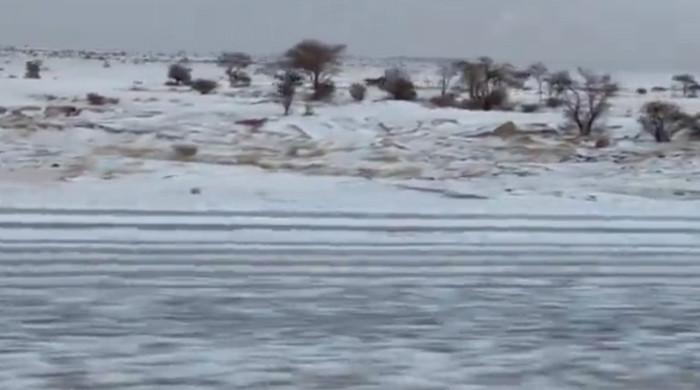 Located west of Riyadh, the Afif desert was surprisingly covered in snow on Friday after heavy rain and hail.