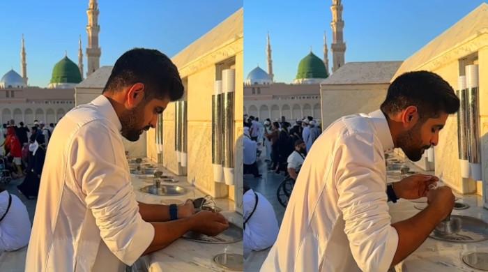 Taking to Instagram, Babar informed his fans about his visit to Madina by posting a video of himself performing ablution in front of the Green Dome, which is a significant part of the Prophet’s Mosque as it rests atop of beloved Prophet Muhammad’s grave.