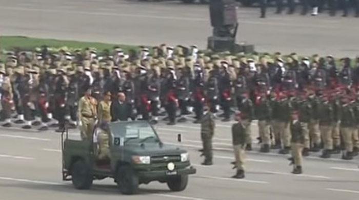 The main feature of the day is the grand military parade in Islamabad where contingents of three armed forces and other security forces conducted a march past while fighter planes presented aerobatic maneuvers.