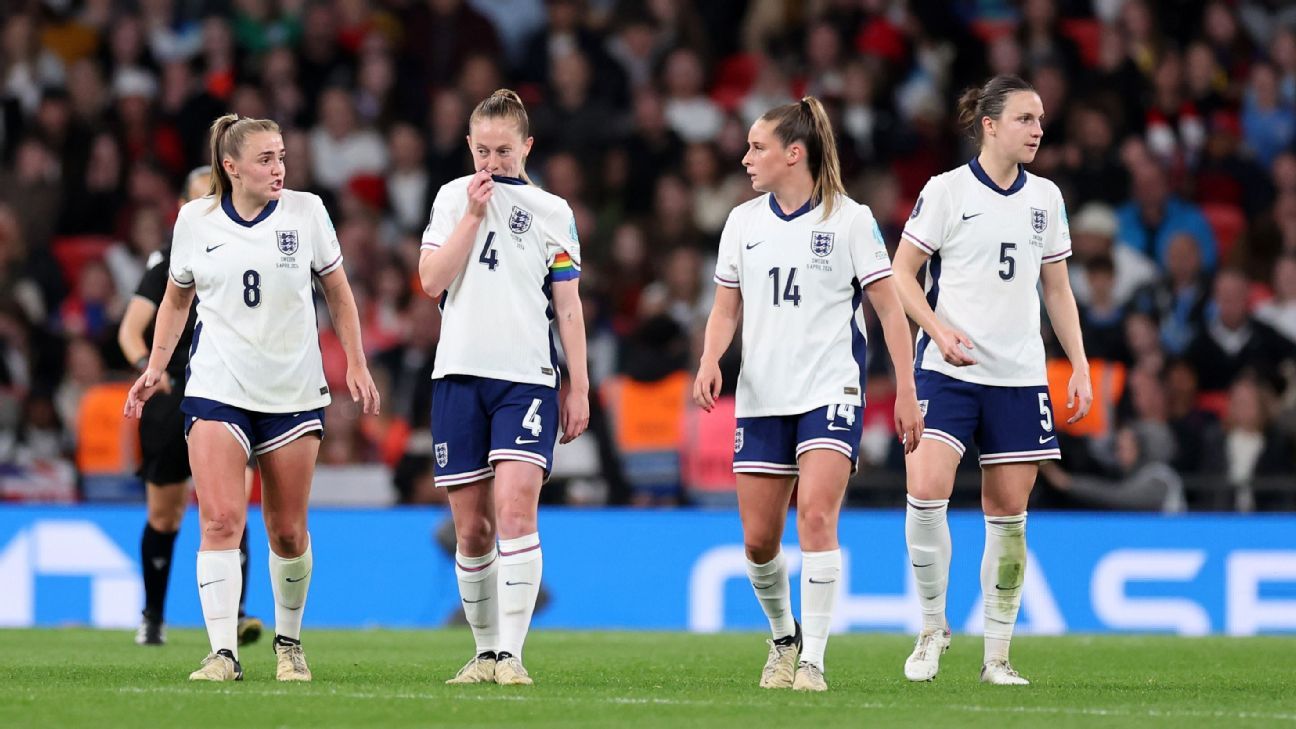 Russo’s backheel — one of the iconic moments from that tournament in England’s 4-0 win at Bramall Lane in that semifinal has been replayed all week. Leah Williamson was back in the England squad for the first time in a year after she’d recovered from her ACL injury. But this isn’t a group living off past glories — it’s not their mantra.
