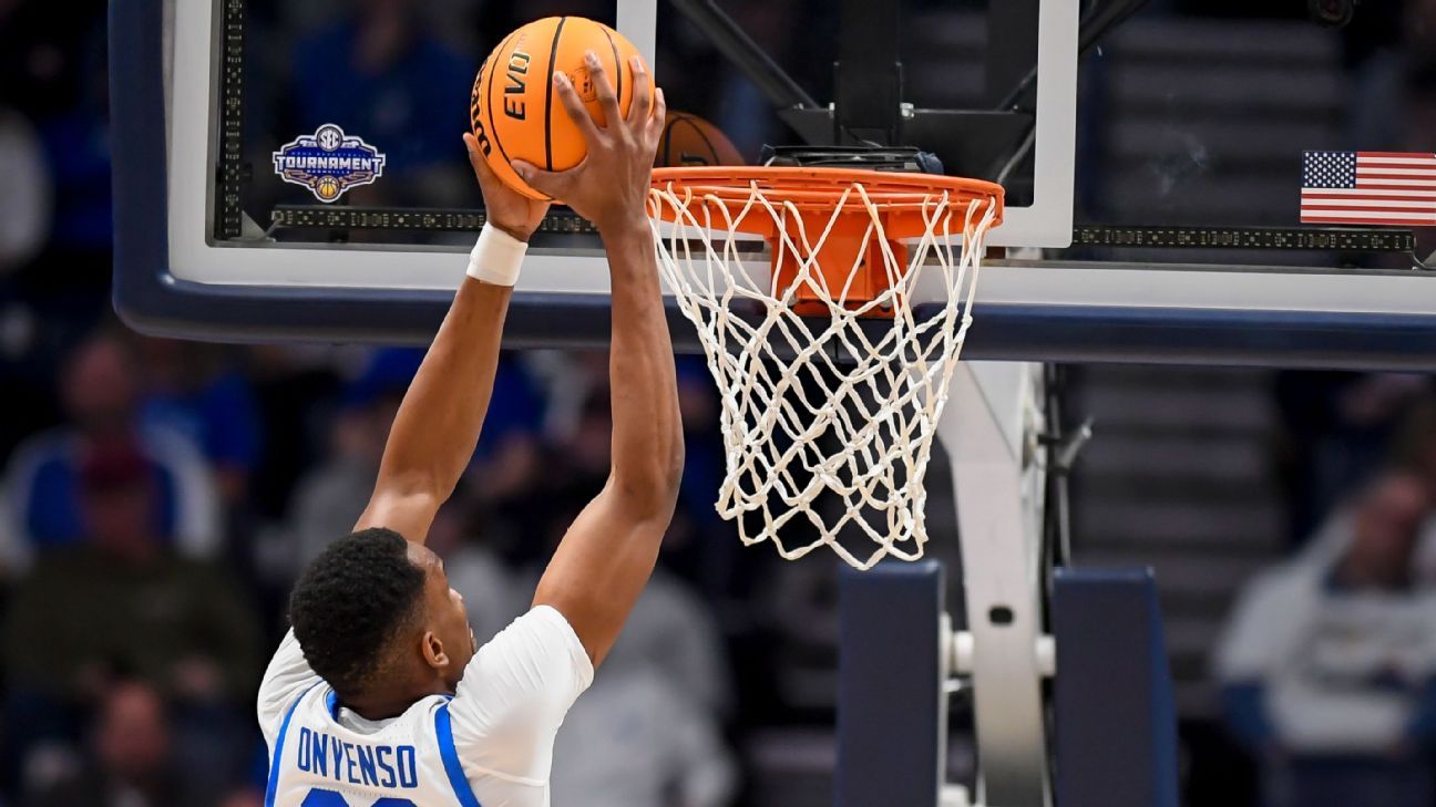 Onyenso, ranked No. 47 in the ESPN 100 among NBA draft prospects, averaged 3.6 points, 4.8 rebounds and 2.8 blocks in 19 minutes per game this season. He is one of the most physically gifted prospects in this class, standing 7-feet tall with a 7-foot-4 wingspan and chiseled 247 pound frame. He is an outstanding athlete with impressive mobility covering ground fluidly and quickness getting off his feet for dunks and blocks.