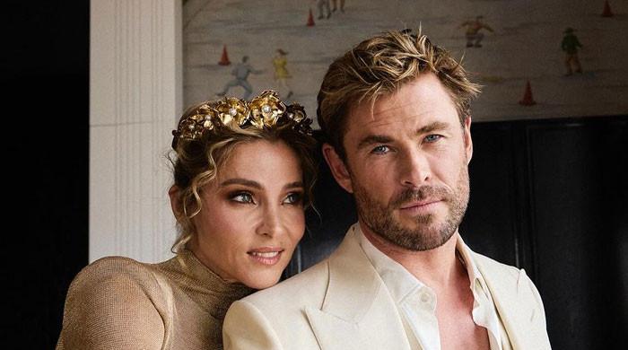 Hemsworth donned a sleek three-piece cream suit, while his wife Elsa Pataky opted for a resplendent golden gown.