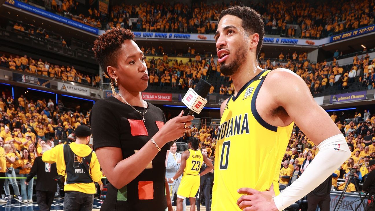 One shift took place near the 16-minute mark, while Haliburton described the evolution of his celebrity status. The other occurred close to the 34-minute mark, in a play-by-play breakdown of what happened between the Pacers and the Milwaukee Bucks when Giannis Antetokounmpo got upset over a game ball in December 2023.