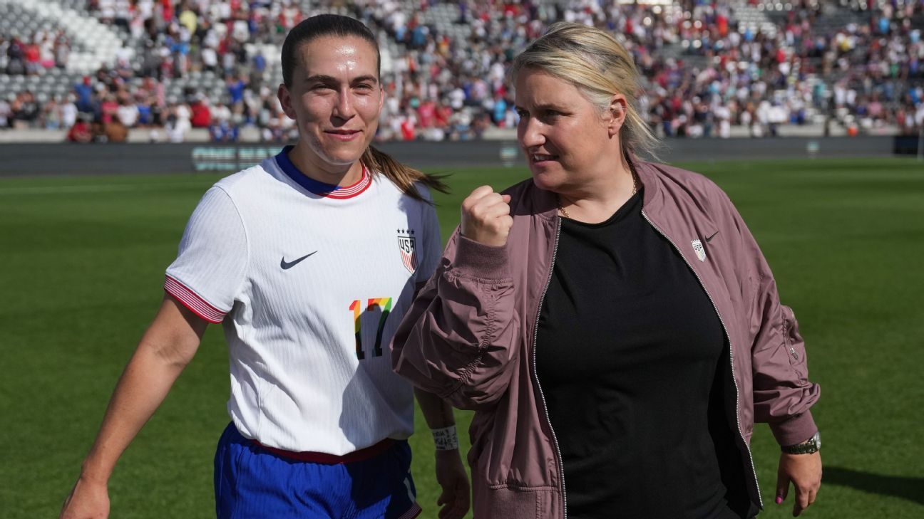 Macario played the No. 10 role on Saturday in her first start for the national team in 781 days. She pressed into high areas alongside Smith, the USWNT’s No. 9, as the USWNT built attacks with five players across the front line at times. Macario also frequently flared out to wide areas to find the game. Swanson would shift inside at times, too, and she moved into the No. 9 role late in the match after a series of substitutions. Trinity Rodman rounded out the front four for the USWNT with her usual persistent effort on both sides of the ball on the right wing. The interchange between those four players specifically is a welcomed sign for a team that was too rigid — a word Hayes used recently to describe what the team must avoid — at the 2023 World Cup, where the USWNT’s round of 16 exit marked the program’s worst finish at a major tournament.