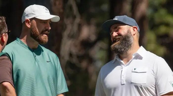 Travis Kelce affectionately comforts man after injuring him on golf course