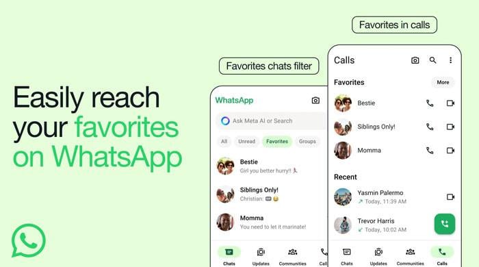 - They can designate specific contacts and groups as favourites directly from the chat info or the calls tab.