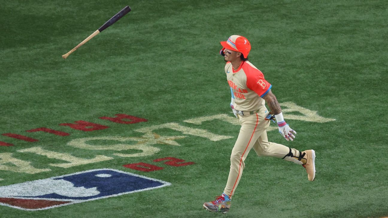 Jesse Rogers: Shohei Ohtani’s home run off Tanner Houck was a thing of beauty, making Mason Miller‘s strikeout of him in his next at-bat in the fifth inning even more impressive. Miller has burst onto the All-Star scene with a dominant first half, firing 299 pitches of 100 mph or more. Add two more triple-digit offerings during Ohtani’s at-bat — mixed between two sliders — and it was the young pitcher who got the “oohs” and “aahs” from the crowd when Ohtani swung and missed on the righty’s fourth pitch. Miller — who also threw a Midsummer Classic record 103.6 mph pitch to Trea Turner — would be fun to watch in October, if he can get out of Oakland.