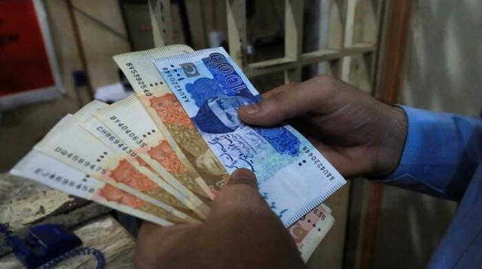 A man counts Pakistani rupee notes at a currency exchange shop in Peshawar on September 12, 2023. —Reuters