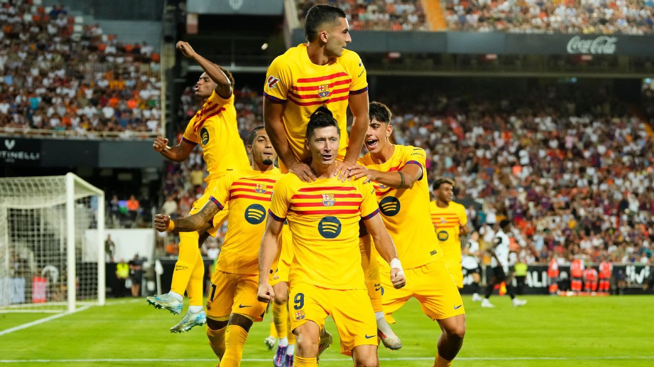 Lewandowski struck twice after Hugo Duro had opened the scoring as Barça, missing key players through injuries, holidays and registration issues, came from behind to silence the whistles coming from a raucous home crowd on a searing hot Spanish summer night at Mestalla and win 2-1.