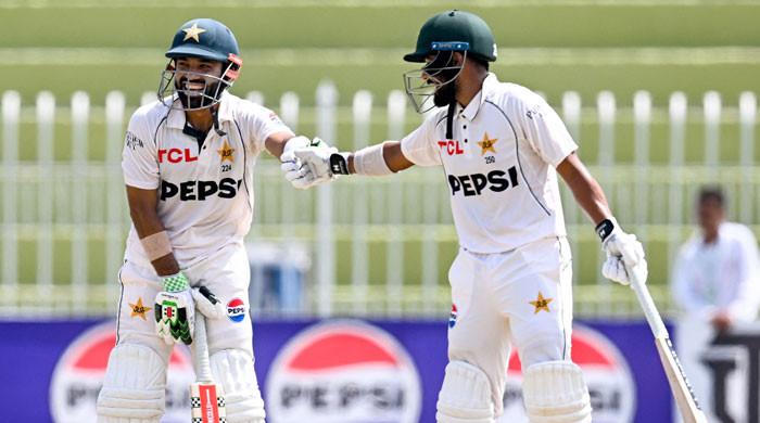 Coming on the field today, the duo continued the team’s innings from 158-4 after Wednesday’s setback wherein the national side lost back-to-back wickets but managed to make a comeback courtesy of Shakeel and Saim Ayub’s 98-run partnership.