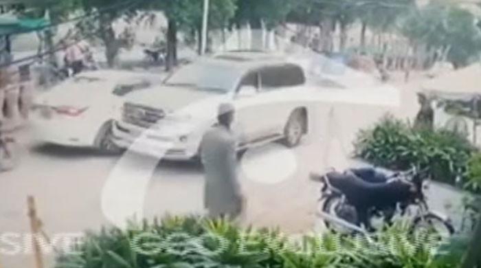 In the footage, obtained by Geo News today, the luxury vehicle was seen speeding in a service lane before crashing into the motorcycle which led to the killing of 26-year-old Aamna Arif and her 60-year-old father, Imran Arif.