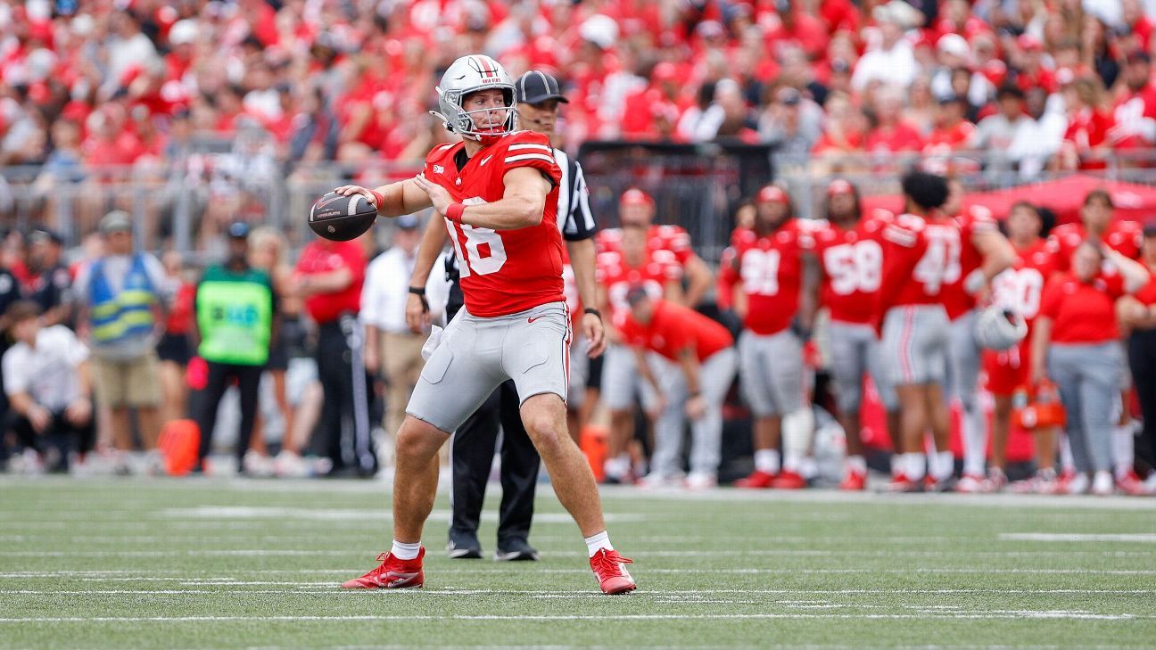 The Buckeyes have yet another rising star wideout in true freshman Jeremiah Smith, who shined in his Ohio State debut. Smith dropped his first pass off his chest on the opening drive. After that, he was unstoppable. He finished with 92 yards receiving on six catches and became the first Ohio State freshman in 26 years to debut with two touchdown receptions.