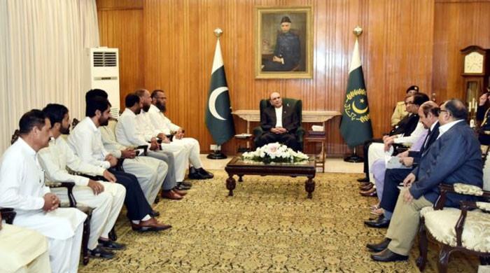 President Zardari, talking to a delegation of migrants from IIOJK — residing in Pakistan since 1989 — led by Uzair Ahmed Ghazali at Aiwan-e-Sadr, emphasised that such elections were unacceptable to the people of Kashmir and called upon the international community to hold the Modi government accountable for ongoing human rights violations in IIOJK.