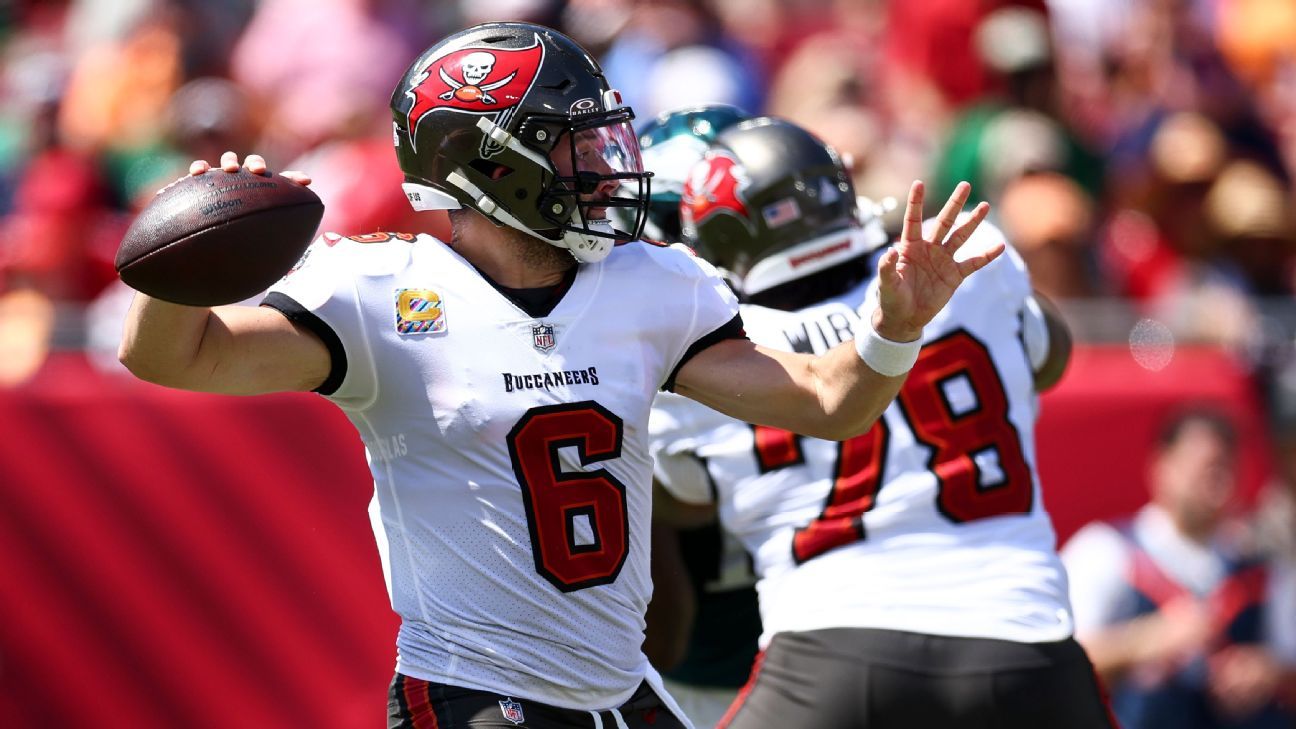 What changed for the Bucs after last week’s collapse against the Broncos? QB Baker Mayfield and the Bucs scored three touchdowns in the first 16 minutes and four total. They exploited Eagles defensive coordinator Vic Fangio’s soft coverage with a ton of quick hitters, protecting the vulnerable right side of an offensive line still without right tackle Luke Goedeke (concussion). Defensively, their meager pass rush saw 6.0 sacks after just 2.0 in the first three games and their secondary looked more sure-footed.