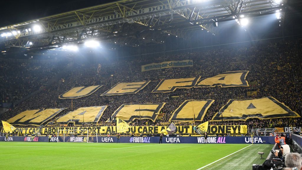 Borussia Dortmund fans have made their opposition to Champions League reforms clear with a huge tifo blasting European football’s governing body UEFA ahead of their one-sided 7-1 win over Celtic.