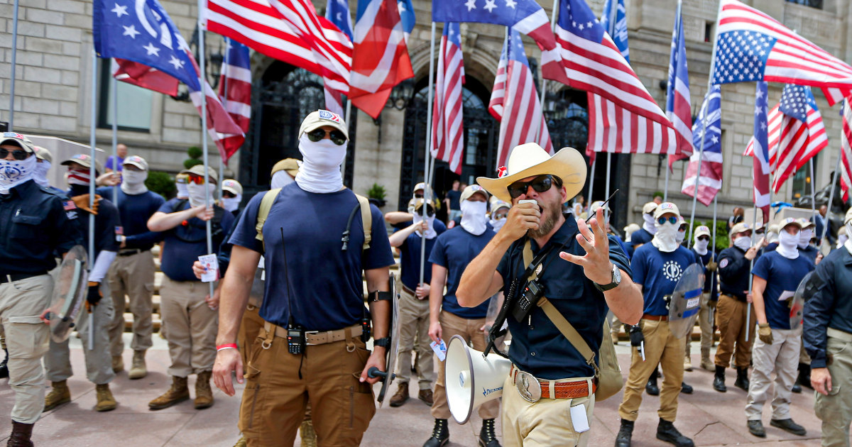 They were largely dressed alike in khaki pants, dark shirts, hats, sunglasses and face coverings.