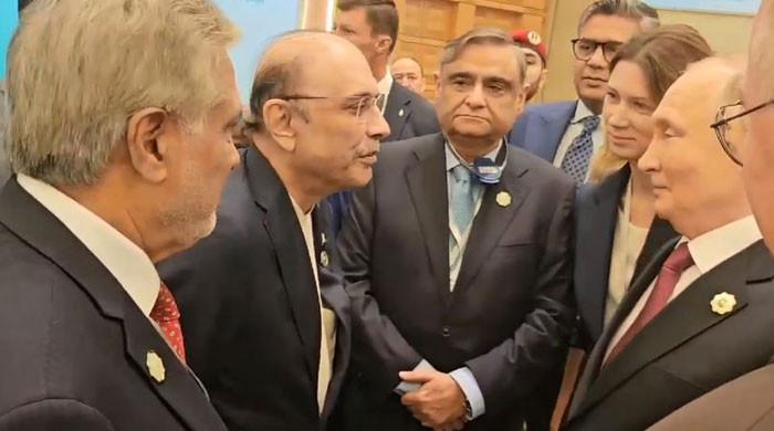 - President Zardari met his Russian counterpart Putin in Ashgabat.