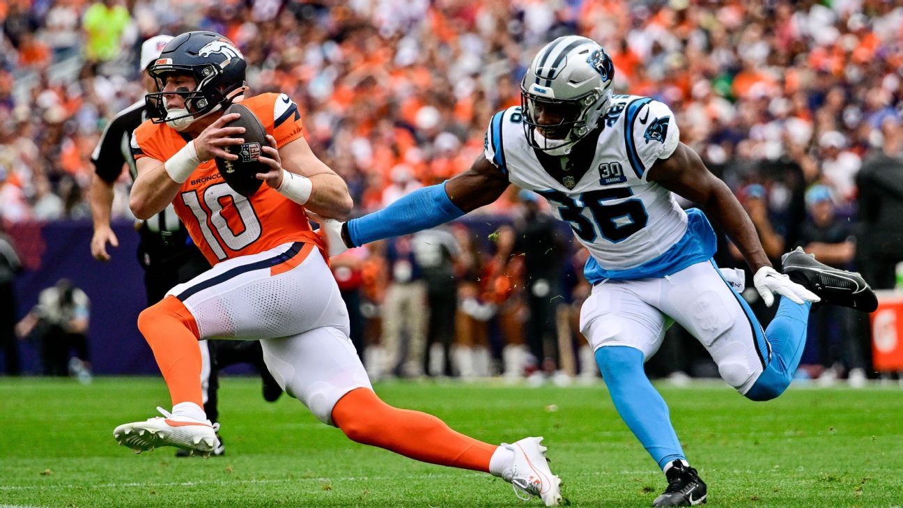 Sam Darnold, Minnesota Vikings (46.5%): It’s surprising that Darnold is still available in nearly half of ESPN leagues. He’s had five games with multiple passing touchdowns this season. That’s huge, especially considering he had only four such games over his previous three seasons combined (18 starts). With top-notch receiving playmakers like Justin Jefferson, Jordan Addison and soon-to-be-returning T.J. Hockenson, he’s set up to succeed. He faces the Indianapolis Colts in Week 9 and Jacksonville Jaguars in Week 10, and both defenses rank inside the top 12 in fantasy points allowed to quarterbacks.