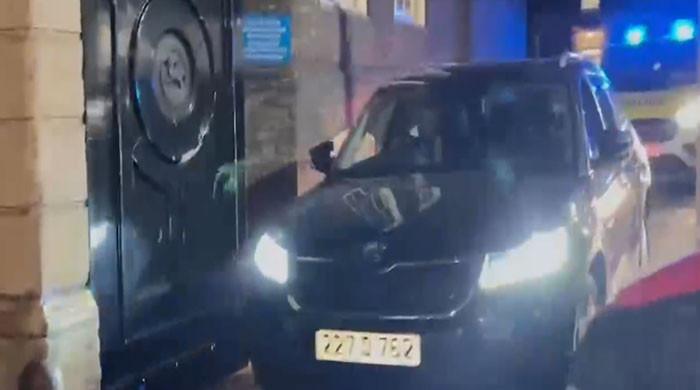 As Isa’s car — bearing the Pakistan High Commission diplomatic number plate — appeared from the Temple’s exit door at around 10:20pm, PTI demonstrators led by Shayan Ali made their way to the car, tried to stop it and shouted slogans against the jurist.
