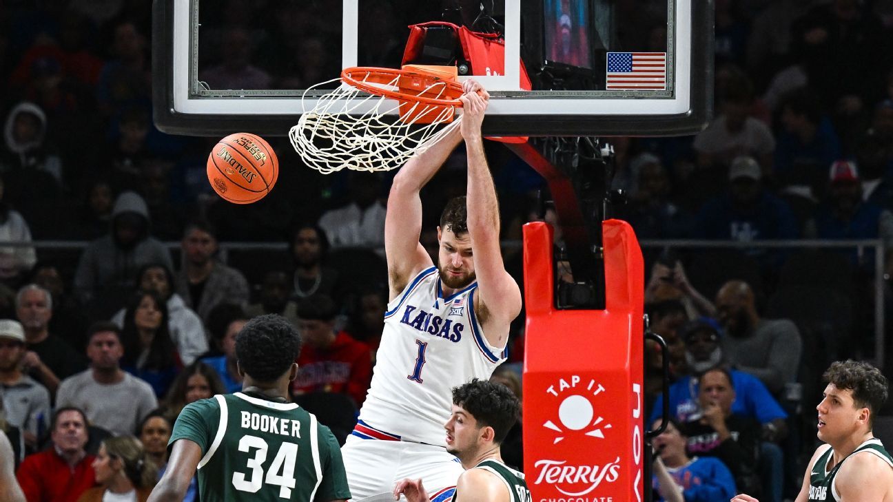 “You’ve got to grind games out like this, especially against teams like Michigan State,” said Dajuan Harris Jr., who finished with 11 points and six assists for Kansas. “You know how they play super hard, play super fast. So that was a game where we had to grind down and play together and really played through [Dickinson]. He brought us home [a win].”