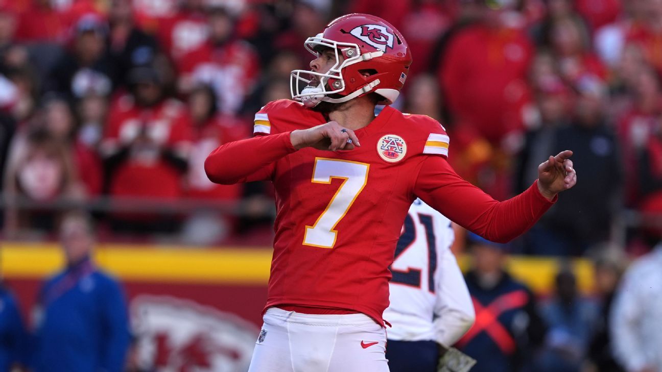 KANSAS CITY, Mo. — The Chiefs are placing kicker Harrison Butker on the injured reserve list because of a knee injury, sources told ESPN’s Adam Schefter on Thursday.