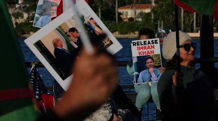 Demonstrators gather in support of Imran Khan outside US President-elect Donald Trump’s residence at Mar-a-Lago in Palm Beach, November 23, 2024. — Reuters