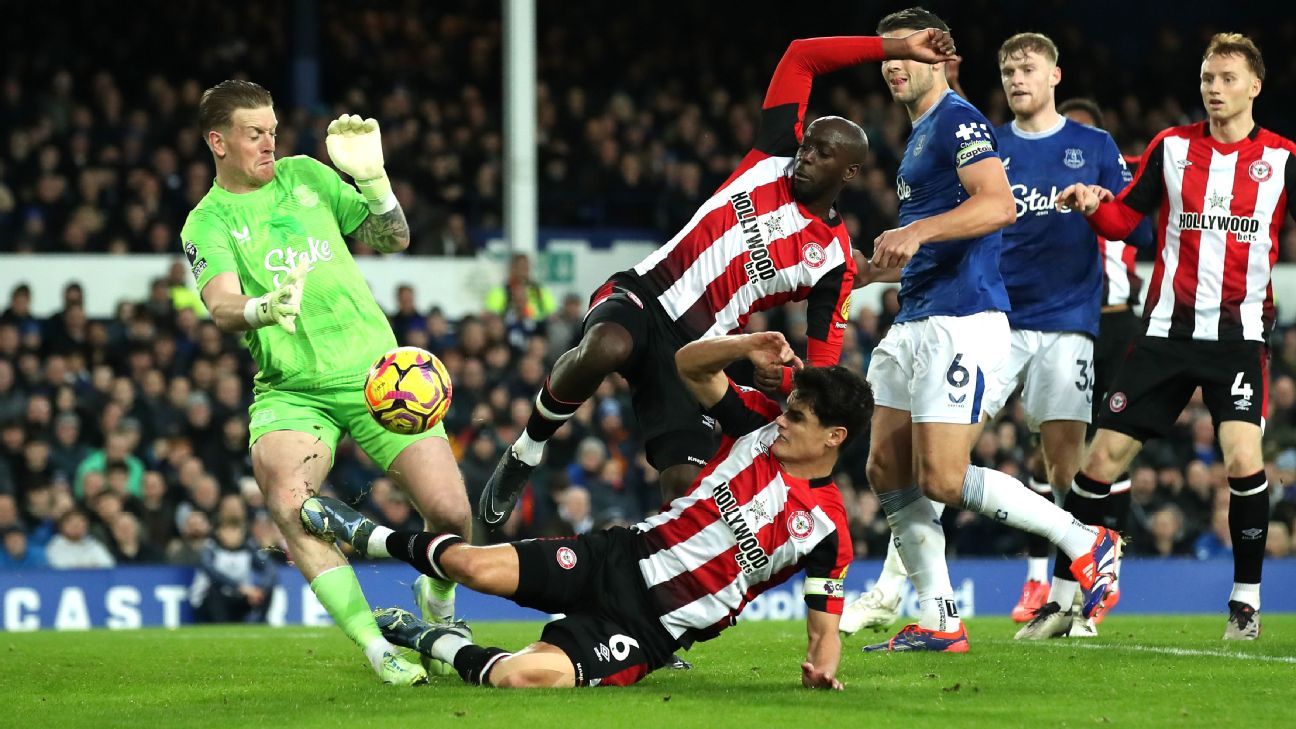 What happened: Brentford were on the attack in the 39th minute when captain Christian Nørgaard tried to get onto the end of a ball played into the box. Nørgaard couldn’t reach it and collided with goalkeeper Jordan Pickford. Referee Chris Kavanagh gave no foul but as Pickford stayed down for treatment holding his knee, it was looked at by the VAR, Matt Donohue.