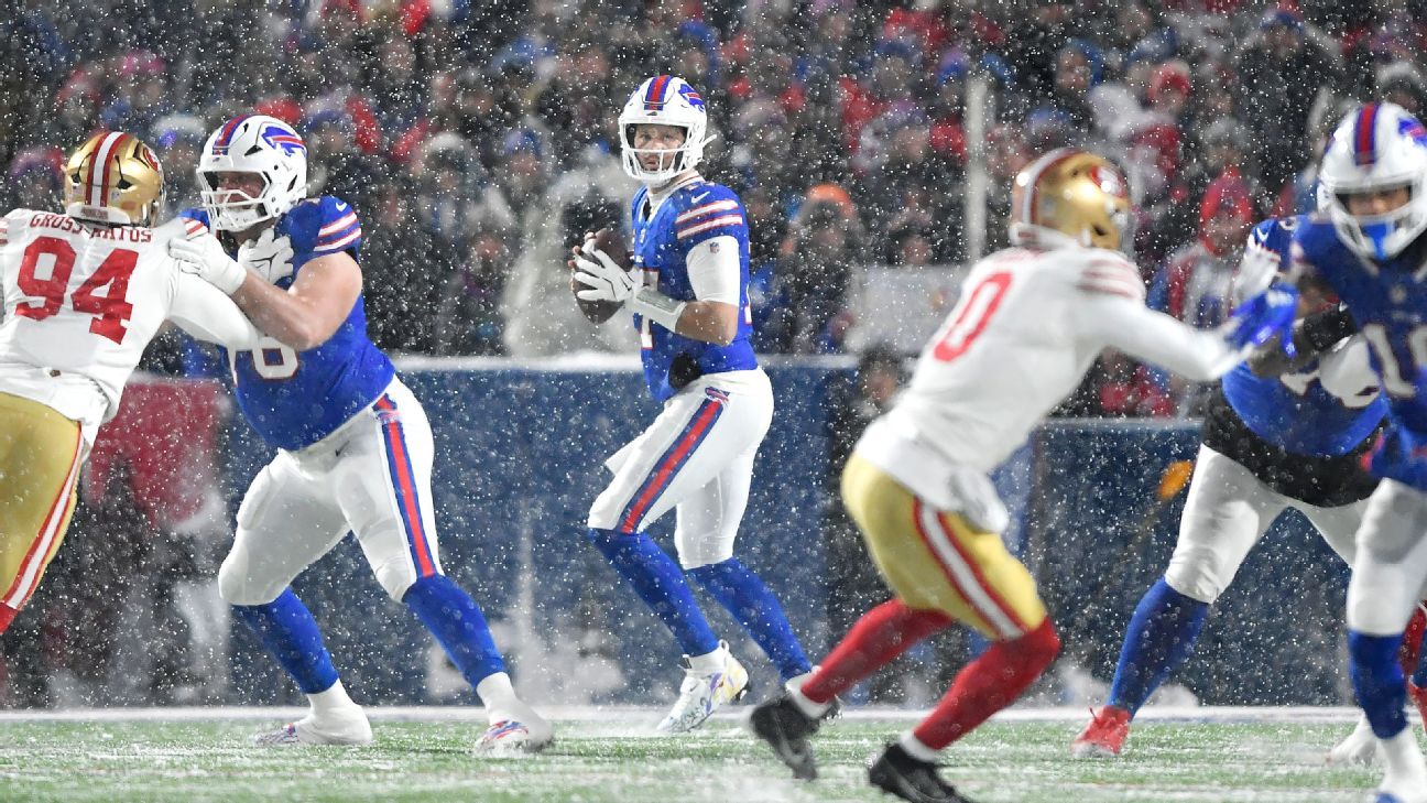 After a missed 45-yard field goal from the 49ers, the Bills capitalized on the team’s very next play, as running back James Cook took a handoff and found his way up the right sideline and into the end zone for a 65-yard touchdown run and a snow angel celebration.