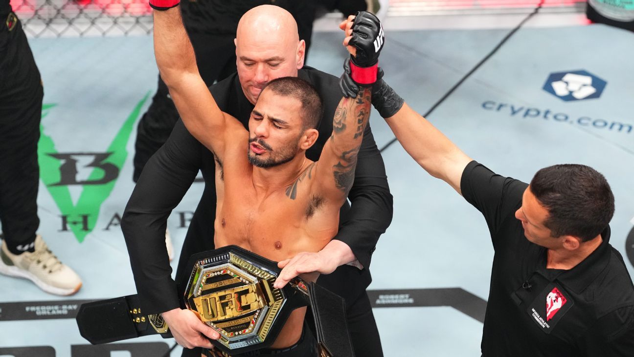 Pantoja took on former two-time Rizin bantamweight champion Kai Asakura in the main event at UFC 310, and in the second round the champ would assert his dominance. Pantoja took Asakura’s back, locked in the rear-naked choke, and forced the referee to stop the fight. The win makes for three successful flyweight title defenses for Pantoja.