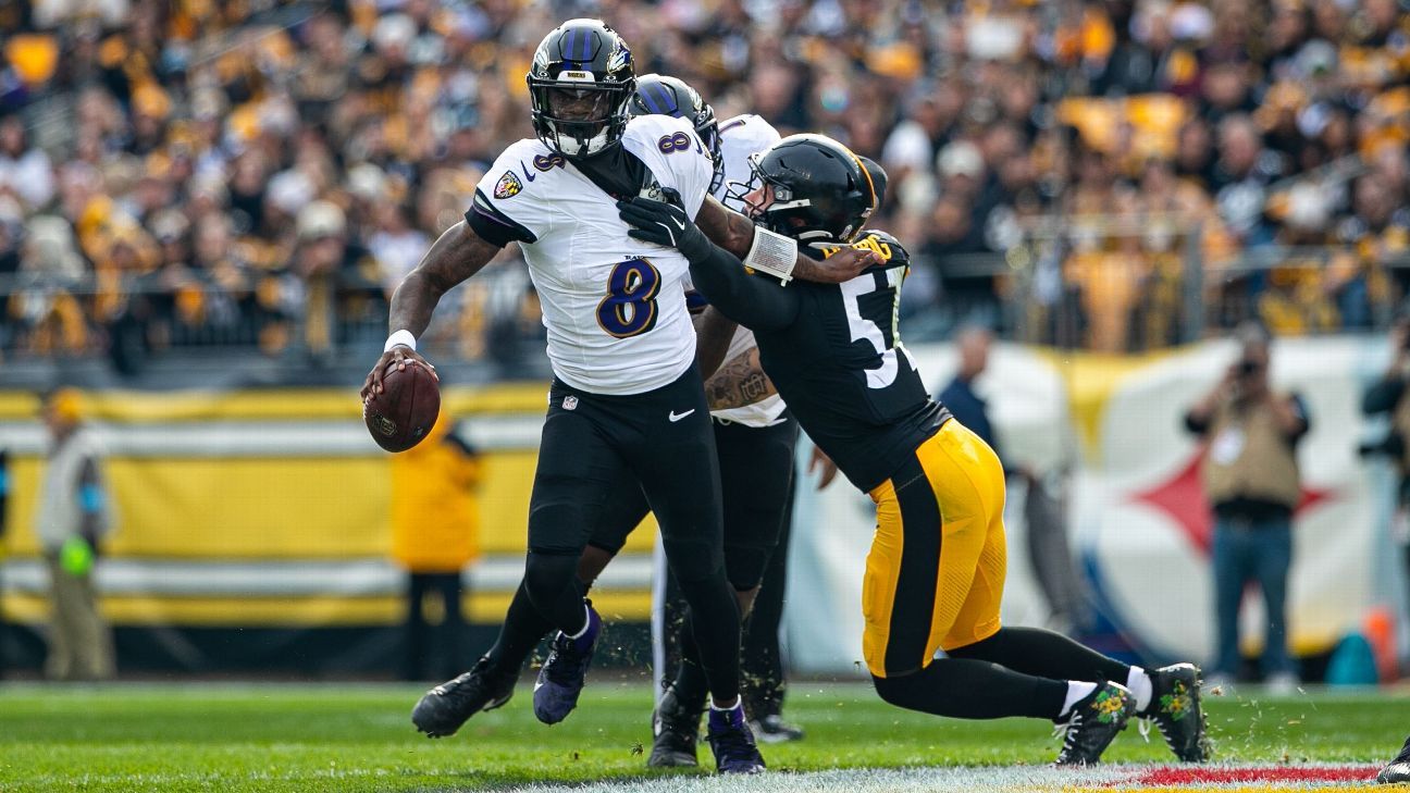 Pittsburgh’s success stems from its aggressiveness. The Steelers have pressured Jackson on 31% of his dropbacks, sacking him 22 times, including 8.5 by T.J. Watt.