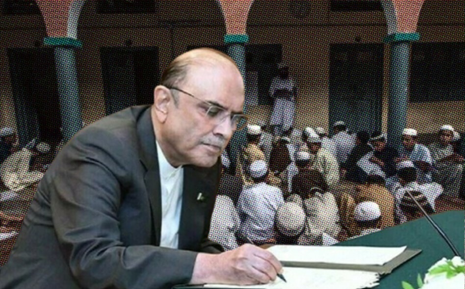 ISLAMABAD – President Asif Ali Zardari on Sunday officially gave his assent to contentious madrassa registration bill after prolonged standoff of incumbent authorities with Jamiat Ulema-e-Islam-Fazl (JUI-F).
