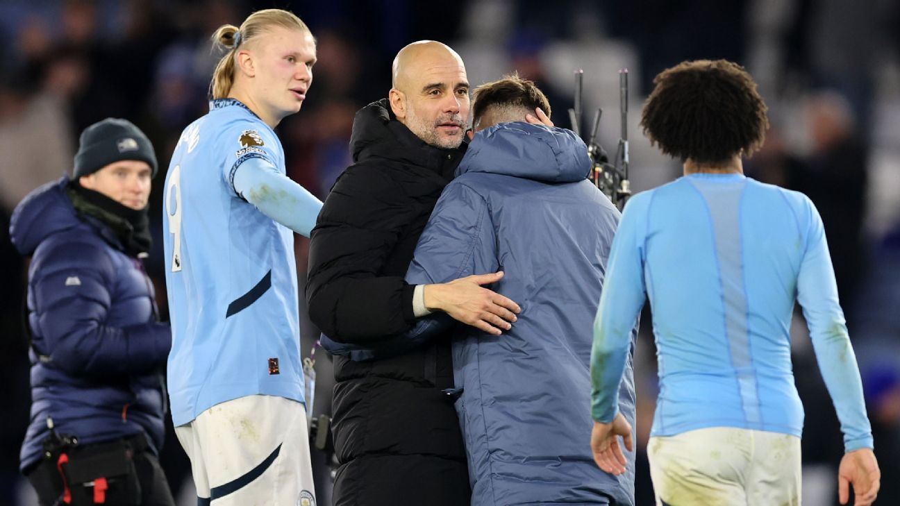 Ruud van Nistelrooy’s Leicester remain 18th after the goals from Savinho and Erling Haaland in Guardiola’s 500th game in charge of City.