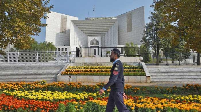 A policeman walks past the Supreme Court building in Islamabad in this undated photo — AFP/File Defence ministry lawyer says precedent for civilians’ military trial set. Justice Mandokhail says May 9 suspects weren’t even “ex-servicemen”. Justice Musarrat Hilali…