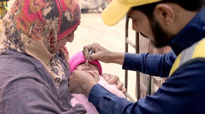 A health worker administers polio drops to child at Nori Gate in Sargodha on Feburary 27, 2024. — APPLatest case involves girl from KP’s DI Khan. This confirmation marks DI Khan’s 11th case. Pakistan reported case from Jacobabad yesterday.