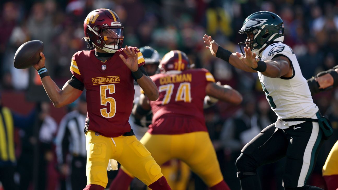 Matchup background: These two NFC East rivals split the series this season. The Eagles took the first game in November 26-18 and the Commanders won the December battle 36-33, though Jalen Hurts exited due to a concussion in the first quarter. Rookie quarterback Jayden Daniels fared well against the Eagles in 2024; he combined for 449 passing yards, a 78.2 QBR, 6 touchdowns and 3 interceptions. Philadelphia and Washington last met during the playoffs in 1990 — Washington won 20-6. — ESPN