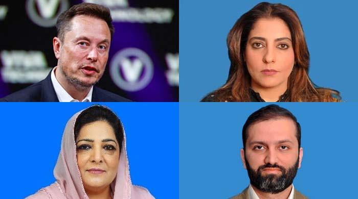 SpaceX chief Elon Musk, Senator Palwasha Khan, Senator Anusha Rahman, and Senator Dr Afnan Ullah Khan. — Reuters/Senate of Pakistan Website/File